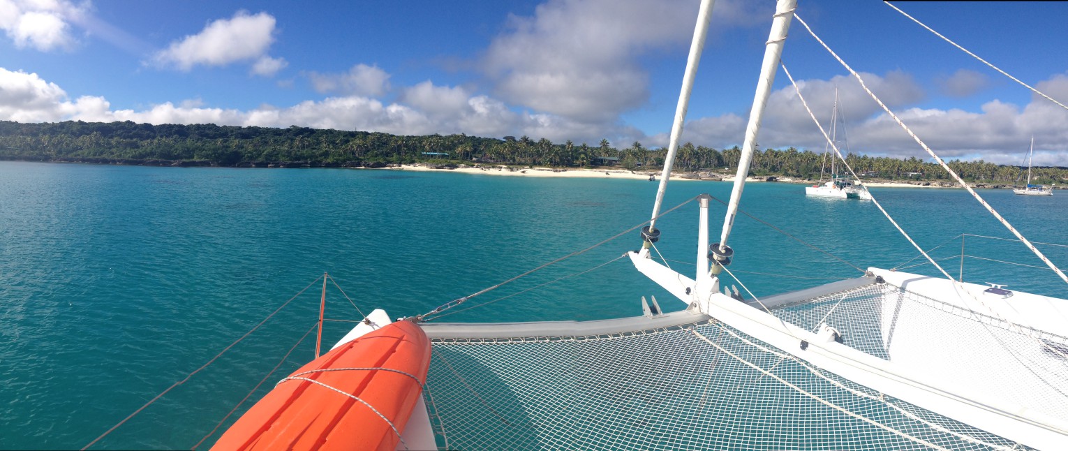 Fortunately, Oscar, on his catamaran, Zenitude, was there to explain it all: the 7 am bus to town (arrives at 7:40), the strategy for acquiring baguettes (complex), how to find the Chief (we failed – we found village drunk instead, but went through the ceremony anyway) and the all the island highlights. Like Jokin – towering cliffs surround a perfectly protected bay with impossibly crystal clear water