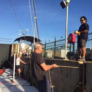 The lock system ran like clockwork… Boats in and out with lock master banter and Ressie throws off her marina shackles as we head to the start line.